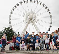 Od przejażdżki na kole Amber Sky rozpoczął się 3 dzień półkolonii. Wcześnie rano podopieczni GZSiSS wyruszyli do Gdańska, aby nacieszyć oczy widokami Głównego Miasta. Przy okazji nie obyło się bez obaw i pewnej dawki strachu przy wsiadaniu do kabin Amber Sky i wznoszeniu się, ale widok z najwyższego miejsca wynagrodził wszelkie niedogodności. Zwiedzanie kolejnych ważnych dla Gdańszczan miejsc zlokalizowanych na Starym Mieście to kolejny punkt tej środowej wycieczki. Żuraw, Neptun, Zielona Brama, Dwór Artusa, Złota Brama, to tylko niektóre elementy gdańskiej architektury odwiedzone tego dnia przez najmłodszych. Duży zainteresowaniem u kolonistów cieszył się napis „Gdańsk” zlokalizowany przy Motławie. Dzieci wykazały się dużą pomysłowością w integrowaniu się literami tworzącymi napis. Po powrocie do siedziby GZSiSS na uczestników czekała kolejna atrakcja - warsztaty taneczne przeprowadzone przez wykwalifikowanego instruktora. Na pierwszy ogień poszła Samba. Początki oczywiście stanowiły pewien problem dla młodych tancerzy, ale już po półgodzinnym treningu każdy z uczestników na tyle opanował kroki, że dość swobodnie tańczono nie tylko samodzielnie, ale również w parach. Na koniec każdy uczestnik otrzymał certyfikat o ukończeniu tego krótkiego tanecznego kursu.
